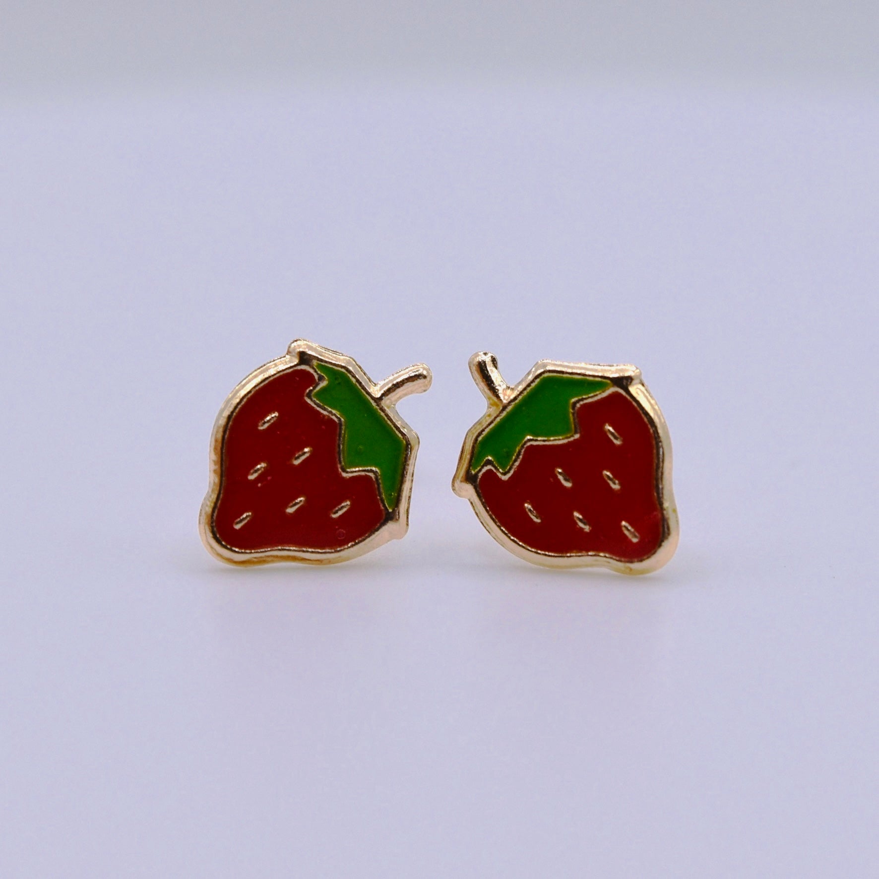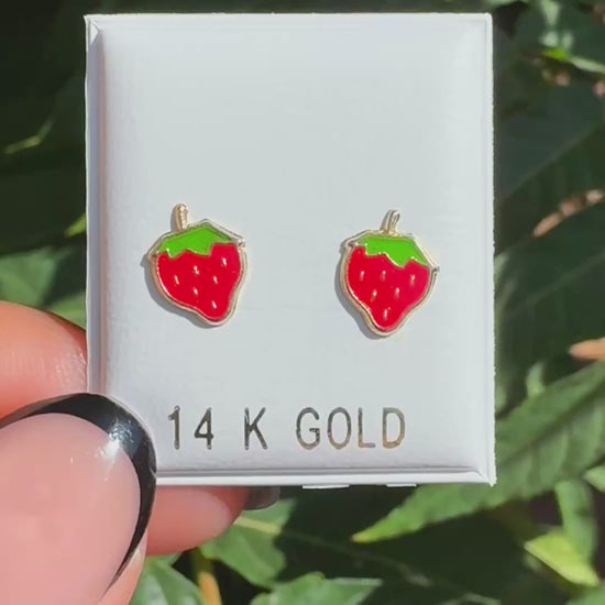 Imagine never having to take your earrings off again! Our gorgeous strawberry studs are made from solid 14k gold, ensuring they'll never tarnish, fade, or irritate your skin. The beautiful red and green enamel detailing gives them a pop of color that's as vibrant and cheerful as a fresh strawberry. 🍓