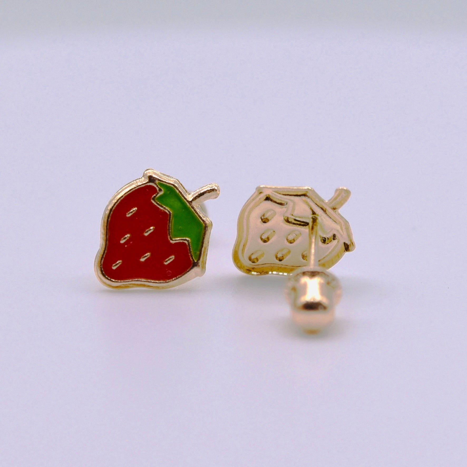 14k Gold Enamel Nap Friendly Strawbery Backless Earrings
